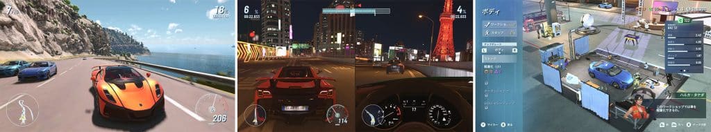 ダウンロード版限定のデジタルデラックスエディションを購入すると、限定パフォーマンスカー3 台が入手できる『パフォーマンスカーパック』、限定カスタマイズパーツが多数追加される『カスタマイズパック』、そしてワークショップにてマシンのアップグレードに使える素材が入手できる『キャリアスターターパック』の三つの追加コンテンツが入手できます。